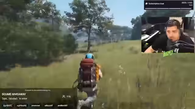 00:13:40Nach dem Giveaway begibt sich der Streamer zum Flugplatz, um Loot zu sammeln. Er zeigt den Chat die genaue Position der Twitch-Drops im Crafting-Menu und beschreibt den Unterschied zwischen Spielgegenständen und deren Skins. Auf dem Gelände trifft er auf gegnerische NPCs, die ihn unter Druck setzen. Er wechselt taktisch die Position und muss sich in einem Gebäude verschanzen, um der Übermacht zu entgehen.