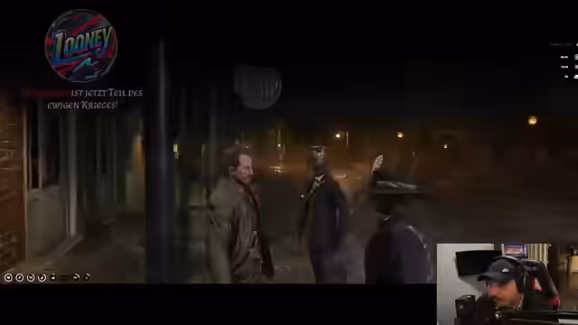 03:00:57Der Streamer erkundet die Interaktionsmenüs der Spielwelt, um Geld zu übergeben, Waffen zu überprüfen und Kleidung auszuwählen. Er kritisiert das 'Performance-Modus'-Menü als nutzlos. Bei der Erkundung der Stadt stellt er fest, dass diese nachts weniger NPCs hat. Mit 80 Dollar in der Hand wird geprüft, ob der Saloon betreten werden kann. Es wird das Konzept eines 'Penners' eingeführt, der nur über die Hintertür Zugang findet und auf Reste angewiesen ist.