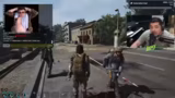 02:26:37Ein Angriff durch Zombies lökt Panik aus, der Streamer gerät in Schwierigkeiten, wird aber von Teammitgliedern gerettet. Es folgt ein Vorfall, in dem versehentlich ein Teammitglied mit einem Pfeil angeschossen und verletzt wird. Später trifft man auf ein anderes Spielerpaar auf einem Motorrad. Es kommt zu einer Auseinandersetzung, als man versucht, das Motorrad zu erpressen oder zu stehlen. Der Streamer versucht währenddessen, die Gegner mit einem Trick abzulenken, was jedoch teilweise scheitert.
