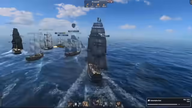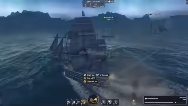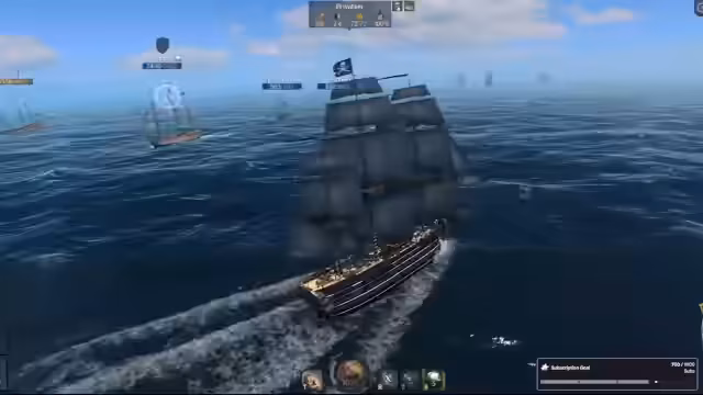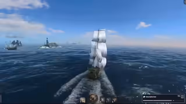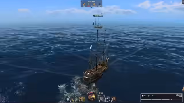 00:00:02Der Streamer startet das Spiel mit dem Schiff 'Brakes Fury' in einem anfänglichen Gebiet. Es werden erste Kämpfe mit anderen Schiffen, darunter ein Bounty-Handels Schiff, geführt. Dabei werden die grundlegenden Mechaniken des Spiels erklärt, wie das Rammen von Schiffen und das Entern, wenn die Hälfte der AP zerstört ist, um Beute wie Waffen und Matrosen zu erbeuten. Der Streamer beschreibt das Gameplay als ein lustiges MMO, das an EVE Online erinnert, und hat ersten Spaß bei den Schiffsschlachten.