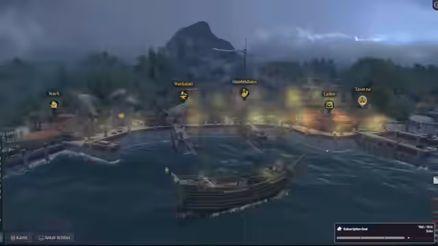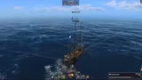 07:51:25Einleitung in das Handelssystem auf dem Wasser. Per Schieberegler kann die Menge des gehandelten Guts festgelegt werden. Wichtig ist, immer Holz und Stoff für Schiffreparaturen an Bord zu haben. Als Navigationshilfe werden die Windrichtungen erklärt, die sich alle Viertelstunde gegen den Uhrzeigersinn ändern. So lässt sich Segeln hart am Wind optimieren. Auch das Flaggenwesen wird besprochen: Die PVE-Friedensflagge schützt vor Angriffen, während eine gefälschte Flagge anderen Spielern den Handel erlaubt, sie aber angreifbar macht.