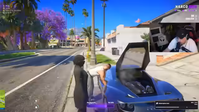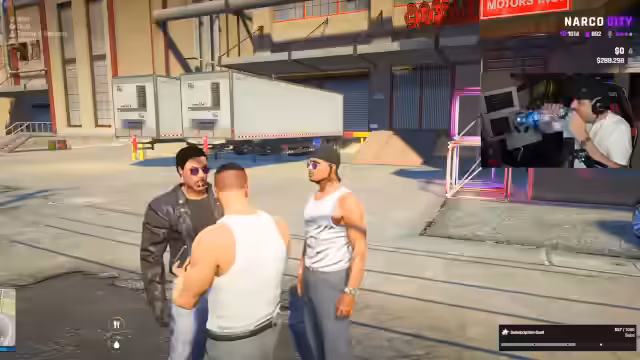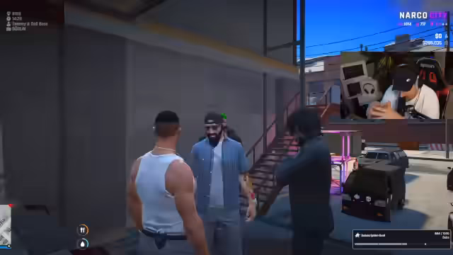 03:01:00Der Streamer konfrontiert offen einen Polizisten namens Gary damit, ihn als Drogendealer für seine Organisation zu rekrutieren. Dabei macht er Androhungen und versucht, Gary mit der Aussicht auf leichtes Geld zu korrumpieren. Dies verdeutlicht, dass das Verbrechersyndikat tiefe Verbindungen bis hin zu Polizeikräften hat und das Gesetz nach Belieben missachtet.