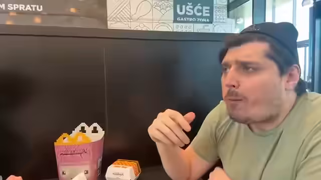 00:02:18Die Begegnung mit einem Mann, der einen Hitlergruss macht, sorgt für Unmut. Der Streamer betont die serbische Geschichte des Widerstands gegen die Nazis während der Fahrt zum Einkaufszentrum. Dort gibt es eine lange Schlange vor dem einzigen geöffneten Restaurant, McDonald's. Der Streamer reflektiert über das Alter, als er bemerkt, dass er ohne Musik lange Autofahrten nicht mehr aushalten kann.