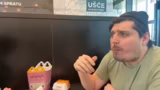 00:18:58Nachdem sie lange vor McDonalds anstehen, entscheiden sie sich für einen Burger-esse-Stream. Der Streamer reflektiert über seine Ernährungsgewohnheiten und seine Entscheidung, das Fastfood für die 'Erfüllung' zu essen, obwohl er eigentlich auf seine Ernährung achtet. Er zeigt, wie er seinen Big Mac isst, indem er die obere Brotscheibe entfernt, um Kalorien zu sparen.