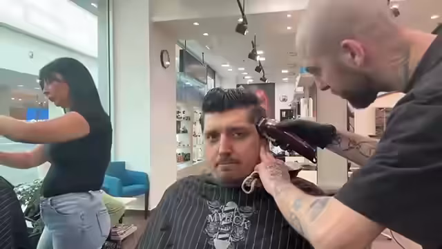 01:14:29Beim Friseur angekommen, fragt der Streamer, ob er streamen darf. Die Friseurin erlaubt es, solange niemand aufgenommen wird. Sie schneiden seine Haare während er weiter über seine Ernährung und seinen Laptop-Kummer spricht. Der Streamer ist erleichtert, dass die Friseurin ihn streamen lässt, und ist zufrieden mit dem Ergebnis seines Haarschnitts.
