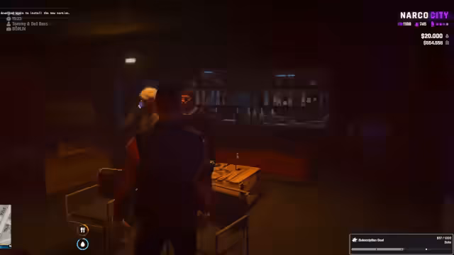 01:14:23Nach der Festnahme geht die Handlung zu alltäglichen Aktivitäten über. Die Charakterer besuchen ein 'Level-Up'-Arcade-Center. Dort unterhalten sie sich über die Zukunft des Streams, die Spielmechaniken und die Rollenverteilung. Es zeigt sich eine Mischung aus Rolle und Comedy, während Tommy plant, Geld bei einem Spielautomaten zu gewinnen und es mit den anderen zu teilen.