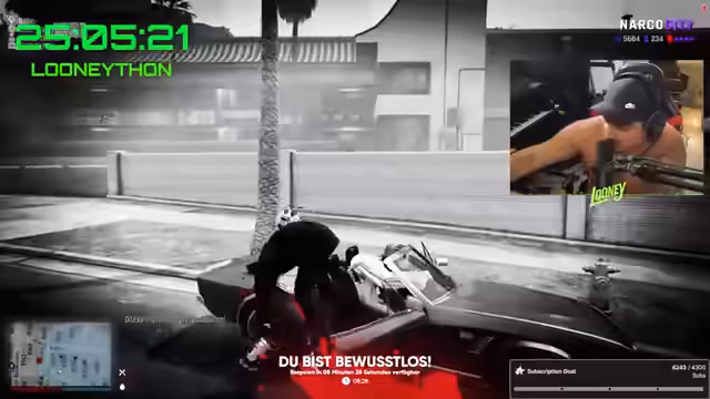 05:26:09Nach einer Verfolgungsjagd durch die Stadt, bei der verschiedene Fahrzeuge beschädigt werden, geraten die Spieler in eine chaotische Situation. Es kommt zu rassistischen Äußerungen und Bedrohungen. Die Spieler beschließen, sich von der Situation zurückzuziehen, aber sie werden weiterhin verfolgt.