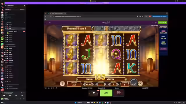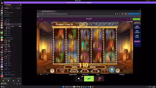 06:59:27Stream gibt einem Benutzer namens Pollard Anweisungen, wie er im Casino Legacy of Dead spielen soll. Er empfiehlt, Coins auf 5, Linien auf 1 und Coin Value auf 1-1,50 Euro einzustellen und linksklick spammen zu lassen. Er kritisiert auch andere Casinobetreiber wie G-Tasty und äußert die Meinung, diese würden den kleinen Arm und die Reichen reicher machen. Gleichzeitig bietet er Schulung via Discord an und will ein Screenshot der Bildschirmübertragung machen.