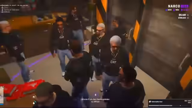 01:14:51Der Streamer gibt den Start einer 'Ausbasionsphase' bekannt. Es geht nicht um reine Mannstärke, sondern um die Qualität der Mitglieder, die kollaborativ agieren müssen. Im Anschluss beginnt eine Patrouille mit einem Fahrzeug. Bei einer Durchsuchung eines Ladens kommt es zu einem Zwischenfall: Es werden Schüsse fired und ein Fluchtversuch. Bei der Festnahme von zwei Verdächtigen wird Bargeld gefunden, was auf mögliche Drogengeschäfte hindeutet.