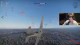 01:41:36Die Konzentration liegt auf einem intensiven Luftgefecht. Der Streamer stellt fest, dass er sich einem gegnerischen Flugzeug in einer kritischen Situation gegenüber sieht und das Risiko eines Zusammenstoßes befürchtet. Es kommt zu einem hektischen Manöver, bei dem der Streamer versucht, den Gegner anzugreifen, während er selbst unter Druck gerät und seine Munition für den Angriff vorbereitet.