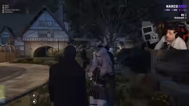 00:34:03Ein wiederkehrendes und surreales Element des Streams ist eine lange, theatralische Inszenierung eines 'Zivilcourage'-Sketches. Der Streamer agiert als selbsternannter 'Mr. Courage' und hilfsbereiter Bürger, der im Namen des gesunden Menschenverstands agiert. Dieser Abschnitt ist von absurden Interaktionen geprägt, die oft abrupt enden oder in eine neue, unerwartete Situation münden. Die Handlung wirkt wie ein durchgeknallter Monolog, der Streamer selbst charakterisiert seine Rolle als 'Batman ohne Kostüm und Geld'.
