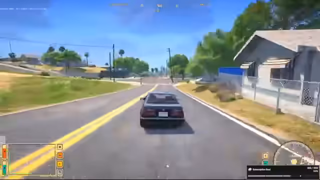 00:03:16Nach der Formulierung des Plans bricht der Streamer auf, um eine Aufgabe zu erledigen. An einer Werkstatt beobachtet er kurz eine Familie, die dort ankommt. Es folgen erste Versuche, auf dem neuen Server einzusteigen und zu interagieren. Dabei treten technische Probleme auf, wie z.B. nicht funktionierende Fahrzeugtüren und die Unfähigkeit, NPCs zu attackieren, was anfangs für Verwirrung sorgt. Der Streamer erkundet die Spielwelt und sucht nach Jobmöglichkeiten.