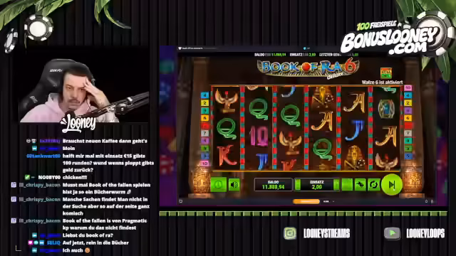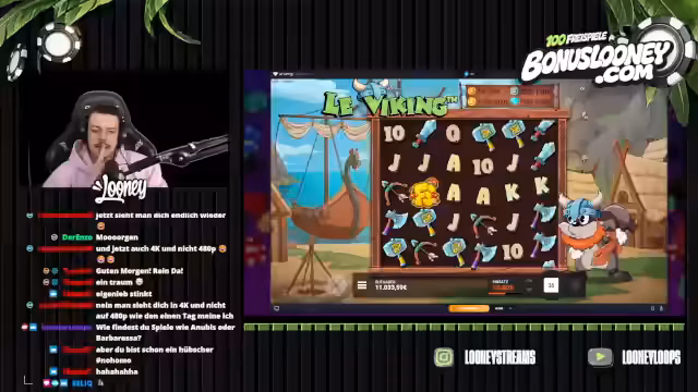 00:02:30Der Streamer setzt auf verschiedene Spieleinsätze und erwähnt gezielt Spielautomaten wie 'Viking' und 'Book of Ra'. Er drückt den Bedarf an höheren Gewinnen aus und betont die Wichtigkeit von Freispielen. Dabei kommentiert er sein Spielverhalten und zeigt Frustration über ausbleibende größere Gewinne, während er gleichzeitig auf Chat-Kommunikation und persönliche Unterbrechungen wie Kaffeeholzeiten eingeht.