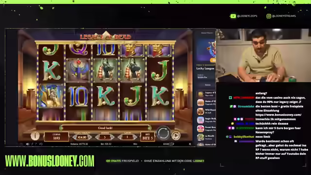 00:22:45Es wird ein Aufruf an die Zuschauer gestartet, im Chat aktiv zu werden, um zu testen, ob die Zuschauerzahlen korrekt erfasst werden. Der Streamer reflektiert über frühere Erfolge mit dem Slot Legacy, den er zwei Wochen lang profitabel gespielt hat. Er fragt die Community nach ihren Erfahrungen mit Book of War und anderen Bücherslots. Toasty gibt ein positives Bauchgefühl ab, woraufhin der Streamer beschließt, weiterzuspielen. Es folgen Versuche, in Freispiele zu gelangen und diese zu verlängern, jedoch ohne großen Erfolg. Der Streamer spricht über hohe Gewinne in der Vergangenheit und betont, dass er kein Fake spiele, auch wenn viele das nicht glauben. Er erwähnt das Risiko, das er eingeht, und zitiert das Motto 'No risk, no fun'.