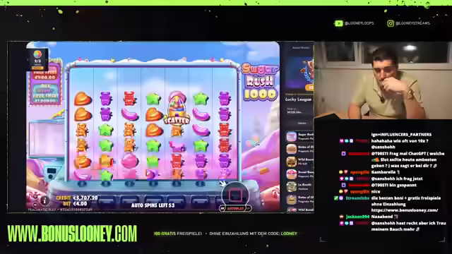 00:45:47Der Streamer erklärt, dass die Zuschauer mit dem Ausrufzeichen 'Bonus' die Möglichkeit haben, in vier verschiedenen Casinos jeweils 100 Freispiele ohne Einzahlung zu erhalten. Er weist jedoch darauf hin, dass dies nur einmal pro Account und Casino gilt und eine Verifizierung der Handynummer und E-Mail-Adresse erforderlich ist. Zudem erwähnt er, dass es auch Boni für Ersteinzahlungen gibt, bei denen jedoch ein 40-facher Wager zu beachten ist. Anschließend setzt der Streamer das Glücksspiel fort, wobei er verschiedene Slots wie Sugar Rush und Gates of Olympus ausprobiert. Trotz einiger vielversprechender Runden bleiben die großen Gewinne aus, und es kommt zu Frustration und Enttäuschung. Der Streamer äußert seinen Wunsch nach hohen Multiplikatoren und dem Erreichen bestimmter Spielziele, die jedoch nicht erreicht werden.