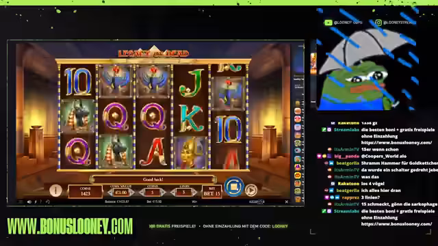 01:48:14Der Streamer geht auf technische Aspekte ein, wie etwa den Live-Support der Casino-Plattform. Er bespricht verschiedene Spielautomaten wie Legacy of Dead und dessen Gewinne in der Vergangenheit. Gleichzeitig bleibt er bei seiner Mission, den Wanted-Slot zu meistern und ärgert sich über fortgesetzte Pechserien.