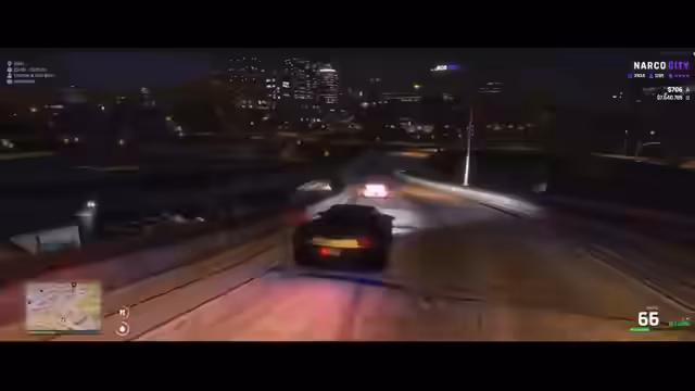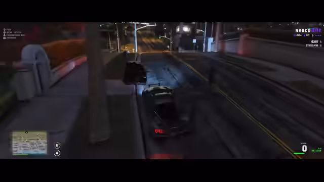 04:45:31Nachdem der Stream aus Star Citizen aussteigt, wechselt das Setting vollständig zu GTA NARCO. Es beginnt die interaktive Rollenspiel-Story. Ein Spieler wird ausgeraubt, seine Ehre und sein Geld gestohlen. Es wird eine Verfolgungsjagd gestartet, bei der die Täter eine Frau auf einem Motorrad sind, was den Grundstein für eine kriminelle Aktion legt.