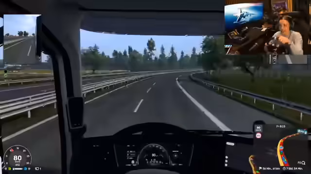 00:00:00Der Stream beginnt mit der Einrichtung von Euro Truck Simulator 2. Es werden verschiedene Diskussionen über DLCs und Kartenpakete wie Westbalkans, Going East, Road to Black Sea und Gold Edition geführt. Erwähnt wird die Anschaffung eines neuen Lenkrads, eines Mosa R3 Bundles mit Pedalen, für 260 Dollar, das laut Streamer eine bessere Alternative zu Thrustmaster Produkten darstellt. Die Einrichtung des Lenkrads und die anschließende Konfiguration der Steuerungseinstellungen im Spiel werden ebenfalls thematisiert.