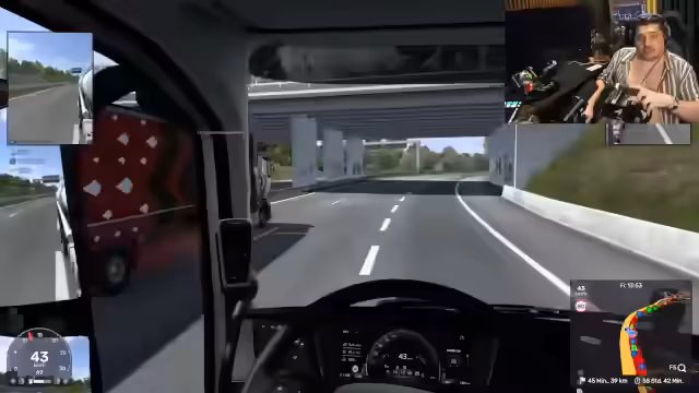 04:01:44Der Stream beginnt mit einem kritischen Fahrfehler, bei dem der Spieler versehentlich eine Taste drückt, die zu Problemen mit dem MF3-System führt. Es folgen Erklärungen zu Spielmechaniken wie dem Sichtbarkeitsgrad auf der Karte, der durch das Erkunden der Umgebung erhöht wird. Er zeigt eine App, die zusätzliche Funktionen wie LKW-Reparaturen oder das Speichern der Position bietet. Auch der grundlegende Spielstil wird diskutiert, wobei der Streamer betont, dass er zwar realistischer fährt, aber kein professioneller Fahrer ist.