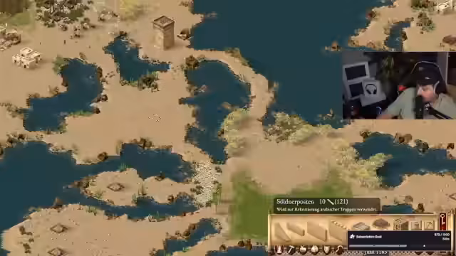 01:21:26Der Streamer startet eine Runde Stronghold Crusader 2 und erklärt, dass er das Spiel zum ersten Mal spielt und einen entspannten Einstieg plant. Zuvor wurden erwähnt, dass er Stronghold für eine Revolution von Age of Empires hält. Er wählt eine Map für drei Spieler aus, lädt Nuni und Cooper ein und stellt die Standardeinstellungen mit 10 Minuten Friedenszeit ein. Die ersten Herausforderungen sind das Auffinden der Ressourcen wie Holz und Stein sowie das Platzieren der ersten Gebäude wie eines Kornspeichers.