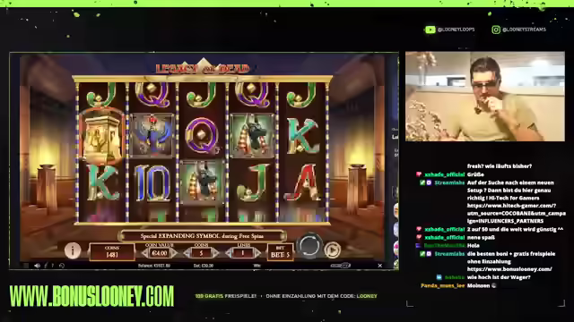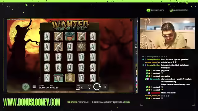 looney startet mit hohem Guthaben eine High Stakes Session bei den Slots Legacy und Wanted, mit dem Ziel, einen hohen Gewinn zu erzielen. Trotz anfänglicher Erfolge und anschließender Rückschläge hält er an hohen Einsätzen fest. Nach einem Wechsel zu Gates of Olympus und Sweet Bonanza kehrt er zu Legacy zurück, in der Hoffnung auf den großen Gewinn. Er beendet mit dem Hinweis auf Bonusangebote.