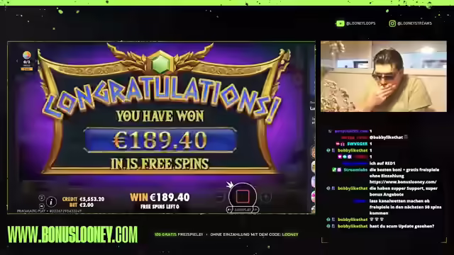 00:39:09Nach einer kleinen Pause von Legacy wird versucht, in Wanted etwas zu reißen. Es folgen Buy-ins mit hohen Einsätzen, in der Hoffnung auf ein Vollbild und große Gewinne. Trotz einiger vielversprechender Momente bleiben die großen Gewinne aus. Der Streamer wechselt zu Gates of Olympus und Sweet Bonanza, kauft sich für jeweils 200 Euro ein und hofft auf hohe Multiplikatoren und große Gewinne. Trotz einiger guter Ansätze und hoher Erwartungen bleiben die großen Gewinne auch hier aus. Der Streamer äußert Frustration über das Verhalten des Slots Gates of Olympus, der seiner Meinung nach die Hand nicht hebt und somit keine hohen Multiplikatoren bringt. Er bezeichnet den Slot als Scamscheiße und ist enttäuscht über die ausbleibenden Gewinne. Trotz der Rückschläge bleibt der Streamer optimistisch und versucht es erneut mit Wanted.