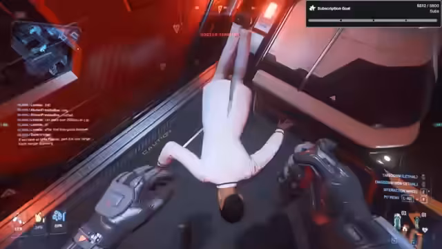 05:33:44Das Team fliegt durch die dichte Atmosphäre und Wolken des Zielplaneten, um den Wurm zu erreichen. Es kommt zu einem Kampf mit gegnerischen Spielern, die eine Polaris bedrohen. Der Streamer landet mit seinem Schiff und beginnt einen Infanteriekampf im Frachtbereich der Station, während seine Teammitglieder aus der Luft unterstützen.