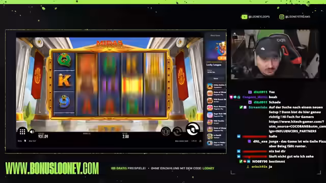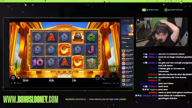 02:14:11In seiner verzweifelten Suche nach einem großen Gewinn wechselt der Streamer zu 'Gate of Olympus' und hofft auf hohe Multiplikatoren und fette Bilder. Trotz einiger vielversprechender Runden bleibt der große Gewinn jedoch aus. Er äußert seine Aggression über die ausbleibenden Erfolge und die hohen Verluste. Anschließend probiert er 'Midas' aus, kann aber auch hier keine nennenswerten Gewinne erzielen. Er spricht über die Bedeutung von Geduld und Ausdauer beim Glücksspiel und betont, dass man nicht aufgeben darf, auch wenn es schwerfällt. Trotz einiger Rückschläge bleibt er optimistisch und sucht nach neuen Wegen, um erfolgreich zu sein. Er testet auch Legacy of Dead und wechselt dann zu Legacy of Midas.