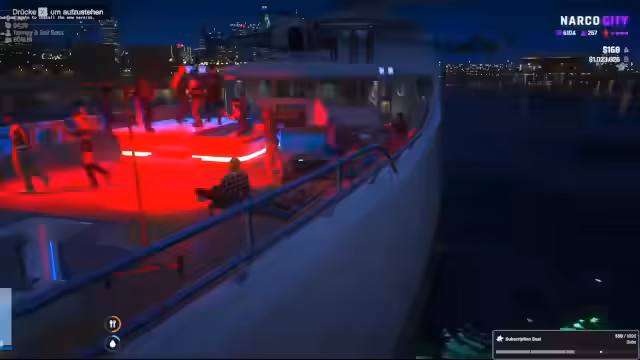 07:33:41Die Gruppe beschließt, zur Yacht aufzubrechen. Sascha bittet den Streamer, ihn zu tragen, da er betrunken ist, und erklärt, dass er aufhören muss zu kiffen, um mit klarem Kopf ein großes Projekt aufzubauen. Auf der Yacht angekommen, findet eine Party statt, die von DJ-Musik begleitet wird. Die Stimmung ist ausgelassen, doch es kommt zu Spannungen mit Behörden, die das Boot kontrollieren wollen, was zu verbalen Auseinandersetzungen und Drohungen führt.