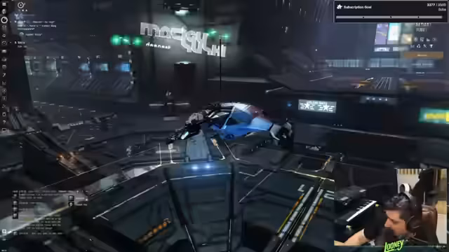 11:25:30Zunächst sucht der Streamer nach einem Modulated Energy Beam, der sich nicht im Inventar, sondern im Hangar befindet. Nach dem Finden und Aufrüsten des Schiffes mit Laser- und Energiestrahlern beginnt der Plan, ins All aufzubrechen. Kurz darauf stellt er jedoch fest, dass das Schiff leer ist und die Module verschwunden sind. Nach mehreren Panikmomenten und einem Neustart des Spiels stellt sich heraus, dass es sich um einen Bug handelt, und alles ist wieder vorhanden.