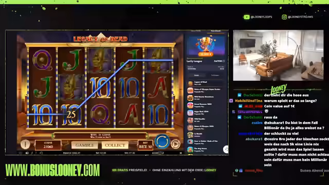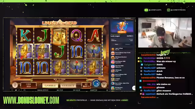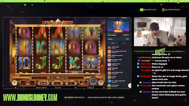 00:01:04Der Stream beginnt mit Danksagungen und der Ankündigung, direkt ins Spiel einzusteigen. Nach kurzer Anmeldung und Überprüfung des Guthabens startet der Streamer mit Einsätzen von zehn Linien auf dem Sechser, um das Spiel zu testen. Es wird nach einem Mod im Chat gesucht und die ersten Spielrunden werden kommentiert. Der Streamer äußert den Wunsch nach Glück und hofft auf gute Ergebnisse. Es folgen weitere Versuche mit unterschiedlichen Einsätzen, wobei der Streamer auf Zeichen achtet und Manifestation als Schlüssel zum Erfolg sieht. Er callt einen Gewinn von 15.000 und betont, dass er nur einmal in die Bonusrunde kommen muss, um erfolgreich zu sein. Zwischendurch wird auf den Bonus mit 100 Freispielen und Boni auf Einzahlungen hingewiesen, wobei der Streamer betont, dass er an den Verlusten der Zuschauer nicht verdient, sondern der Link lediglich der Statistik dient.