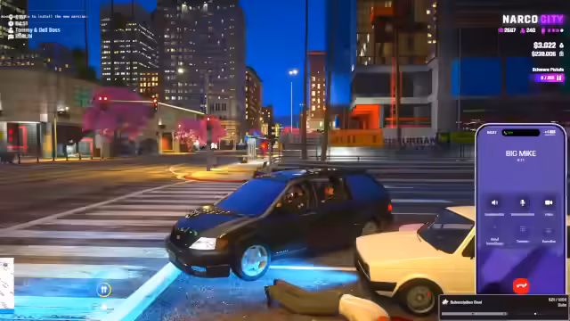 07:52:05Die Szene verlagert sich in ein Hotel, aber der Streamer ist unzufällig über die Auswahl und drängt darauf, zurück in die Stadt zu fahren. Er berichtet über seine momentane Verwirrung und seine extrem hohe Veranlagung, betont aber, nicht betrunken zu sein. Die Unterhaltung wird durch einen Anruf unterbrochen, der den Streamer verunsichert. Später, während die Gruppe durch die Stadt fährt, ereignet sich ein folgenschwerer Vorfall: ein Unfall mit einem anderen Fahrzeug. Es kommt zu einem heftigen Streit, bei dem die gegenseitigen Vorwürfe fließen, wer schuld sei, was die Situation zusätzlich eskalieren lässt. Der Fahrer des anderen Fahrzeugs wird verletzt.