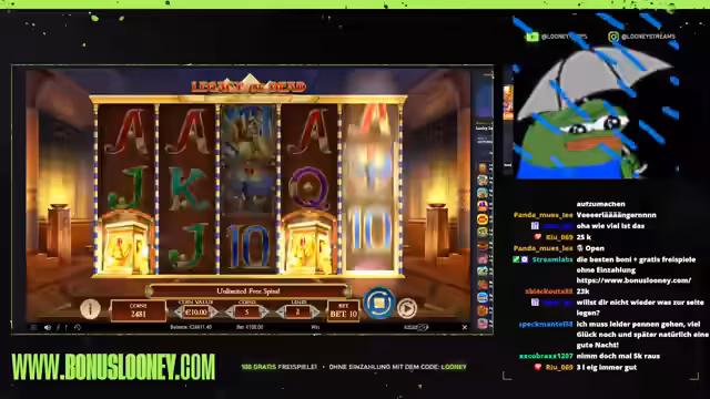 01:57:06Der Streamer diskutiert über den Einsatz bei Legacy und betont, dass es wichtig ist, die Fickphasen des Automaten zu überstehen. Er empfiehlt, bei dieser Strategie auf Verlängerung zu hoffen und nicht auf bestimmte Symbole zu fokussieren. Er erklärt, dass drei Bilder auf der mittleren Linie fünf Gratis-Spins bedeuten können und dass es ratsam ist, kleine Einsätze zu machen, um das Budget zu schonen. Der Streamer ist zuversichtlich, dass der Slot Potenzial hat, aber man die richtigen Phasen abpassen muss.