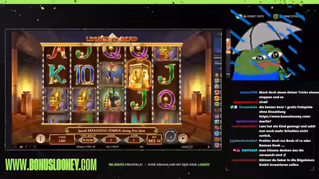00:05:03Ein zentrales Thema des Streams ist das Glücksspielautomaten 'Legacy of Dead'. Der Streamer erklärt, wie er dieses Spiel spielt, und gibt Einblicke in seine Strategie. Er spricht über seine Erfolge mit diesem Spiel und erwähnt, dass er in der Vergangenheit hohe Gewinne damit erzielt hat. Der Streamer gibt auch Ratschläge zur Einsatzstrategie und erklärt die Bedeutung von Mustern und Symbolen im Spiel.