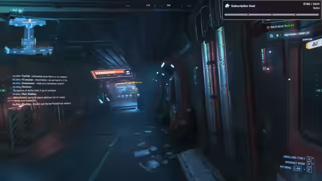 00:53:57Der Streamer bereitet eine Bounty Hunting Mission vor, die jedoch schwieriger ist als erwartet. Die Ziele sollen nicht getötet, sondern lebend gefangen genommen werden. Es werden Schwierigkeiten wie das Verhindern, dass die Ziele ausloggen, und die Zuverlässigkeit des ingame Voice-Chats erwähnt. Die Gruppe erkundet das Schiff, einschließlich Gefängniszellen und Bereiche wie die Brücke und die Kantine, um sich auf die Mission vorzubereiten.