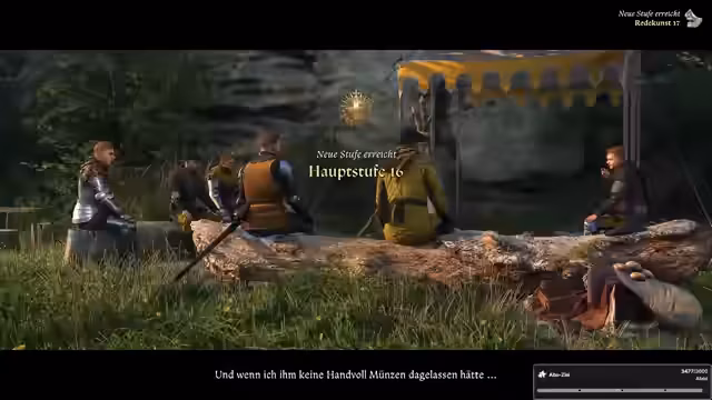 01:14:26Nach der Einführung ins Gameplay beginnt der Streamer mit einem Trainingskampf, um die Kampfsystemmechaniken zu erlernen. Er führt verschiedene Angriffs- und Verteidigungsmanöver vor und interagiert mit dem NPC Hans, der die Grundlagen des Schwertkampfes erklärt. Nach einigen Übungseinheiten kommt es zu einer dramatischen Begegnung mit einer Gruppe Banditen am Lagerfeuer. Der Streamer muss sich einem Überraschungsangriff stellen und eine Jungfrau verteidigen, was zu einer Verletzung und einer sich abzeichnenden Verfolgungsjagd führt. Der Streamer ist sichtlich in die Spielwelt und die Story involviert.
