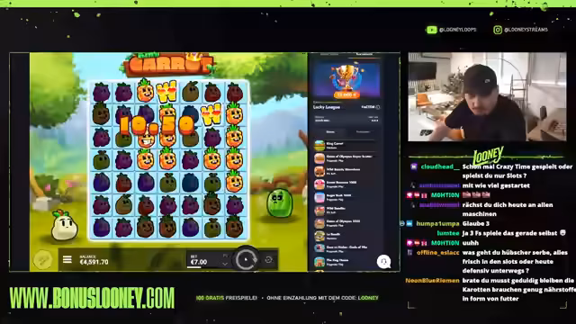00:19:43Die anfängliche Strategie mit Karottchen erweist sich als Misserfolg, und der Streamer erklärt Karotte für tot. Er beschließt, so lange weiterzuspielen, bis ein König erscheint, und dann das Spiel zu verlassen. Trotz des Erscheinens eines Königs bleibt der gewünschte Erfolg aus. Ein Wechsel zu 2 Euro Einsatz bei Lymph soll Abhilfe schaffen, doch auch hier bleibt der Erfolg aus. Der Streamer äußert Frustration über die ausbleibenden Gewinne und die scheinbar toten Spiele. Nach weiteren erfolglosen Versuchen mit verschiedenen Spielen und Einsätzen wird ein Gewinn von 3.300 Euro erzielt, was kurzzeitig Hoffnung aufkommen lässt. Es wird spekuliert, ob das Spiel leer ist oder noch weitere Gewinne bereithält. Nach einem weiteren Speck-Gewinn wird für 140 Euro ein Bonus gekauft.