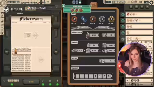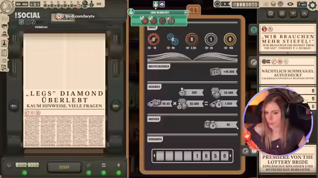 01:34:19Die Zeitung muss mit den vorhandenen Artikeln produziert werden, während Themen wie 'Schmutz', 'Ruhm' und 'Beunruhigend' diskutiert werden. Trotz hoher Papiervorräte reicht das Material nicht, was zu Logikdebatten führt. Der Streamer stellt zusätzliche Mitarbeiter ein und versucht, Artikel wie 'rätselhafte Brandtote' und das Zollgesetz unterzubringen. Zeitdruck und Herausforderungen bei der Mitarbeiterverwaltung dominieren, bis die Zeitung schließlich abgeschlossen und verkauft wird.