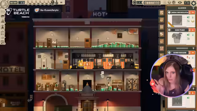 01:24:45Während des weiteren Aufbaus werden zusätzliche Räume wie eine Besenkammer eingerichtet. Finanzielle Einschränkungen führen zu Entscheidungen für preiswerte Einrichtungsgegenstände. Gangster-Probleme erfordern die Einstellung eines Wachmanns. Ein zentrales Problem ist der Papiermangel trotz angeblich hoher Lagerbestände, was zu Verwirrung führt. Der Streamer versucht, Papier nachzubestellen und die Papierverteilung im Lager zu optimieren, während gleichzeitig Aufgaben wie Box-Training und Kriminalitätsberichte erledigt werden müssen.