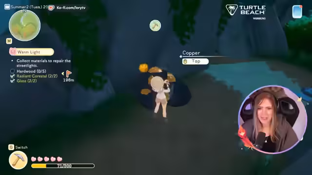 02:41:26Ein zentraler Punkt im Stream ist das Crafting-System. Die Streamerin stellt fest, dass man Glas, aus Tin und anderen Materialien herstellen muss. Sie erkundet die Welt, um Holz und andere Rohstoffe zu finden, und stellt ungeduldig fest, dass man nicht alle Ressournten auf einmal abbauen kann. Das Lagern der Gegenstände wird als etwas nervig empfunden, auch wenn es automatische Sortierfunktionen gibt.