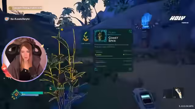 00:54:16Nachdem über verschiedene Spiele gesprochen wurde, startet die Streamerin mit der Demo von 'Astro Botanica'. Zu Beginn erkundet sie eine Insel, scannt Pflanzen und sammelt Rohstoffe wie einen Stock, Beeren und Kristalle. Sie interagiert mit einem Alien, dem sie eine Beere schenkt, und findet erste Teile für ein Totem-Rätsel. Das Gameplay gestaltet sich zunächst als Erkundung mit geringen Möglichkeiten zum Bauen oder Herstellen von Gegenständen, was als Tutorialsphase beschrieben wird.