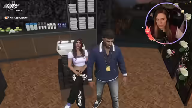 00:37:27Im Friseur findet eine ausführliche Interaktion mit einer anderen Spielerin statt. Es werden Preise für die Dienstleistungen wie Haare, Wimpern und Nägel besprochen. Die Streamerin wechselt mit der Friseurin die Telefonnummern, um zukünftige Termine vereinbaren zu können, was eine Art Vertrauensbildung im RP-Stil darstellt. Der Chat wird in das Geschehen eingebunden, indem um Hilfe bei der Preissuche gebeten wird.