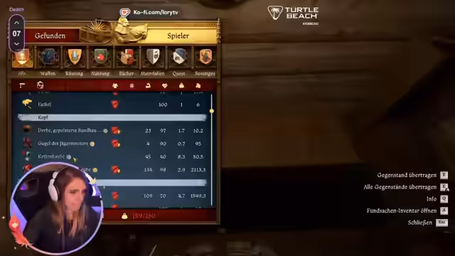 01:42:39Die Spielerin erkundet die Welt von KCD 2, wobei sie auf Händler und Dörfer trifft. Sie äußert die Notwendigkeit, Händler zu finden. Es kommt zu einem Kampf gegen drei Gegner, bei dem sie Schwierigkeiten hat, diese zu besiegen, aber es schließlich schafft. Sie kommentiert ihre Schwierigkeiten im Kampf und die Notwendigkeit von Übung, während sie das Knacken von Schlössern leichter findet. Nach dem Kampf sammelt sie Beute, darunter eine Gänsefeder und Groschen, stellt aber fest, dass sie zu schwer beladen ist. Sie setzt ihre Reise fort und trifft auf weitere Gegner im Wald, die sie mit Hilfe ihres Hundes besiegt. Dabei wird sie verwundet und benötigt einen Verband. Sie stellt fest, dass sie zu schwer beladen ist, um zu reiten, und plant, ihre Beute zu verkaufen.