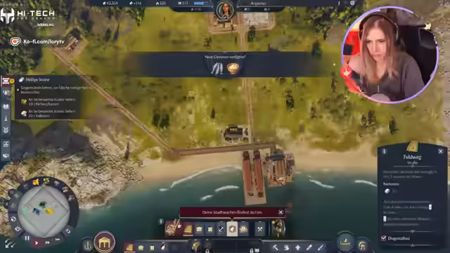 01:49:22Die Streamerin erhält eine Quest, die sich um einheimisches Wissen dreht, und muss eine Entscheidung treffen, die ihre Führungsrolle in der Stadt bestimmt. Sie wählt 'ehrliche Arbeit', was die Instandhaltungskosten um 30% senkt. Es wird über die Verteilung von Ressourcen und die Notwendigkeit weiterer Gebäude wie Muschel- und Aal-Produktionen gesprochen. Die Streamerin bemerkt, dass noch ein weiterer Spieler auf der Karte ist, was sie aufgrund der Größe der Karte nicht überrascht. Eine weitere Mission, bei der etwas zurückgebracht werden muss, wird angenommen. Die Streamerin plant, ein 'Wissensgebäude' zu errichten, um Forschung zu betreiben, während sie eine kurze Pause für Kaffee und Toast einlegt. Sie wartet auf die benötigten Ziegel, um das Gebäude fertigzustellen und betont die Wichtigkeit der Vorausplanung im Multiplayer, da das Spiel nicht pausiert werden kann. Die Streamerin äußert humorvoll die Sorge, dass ihre Stadt während ihrer Abwesenheit von einer Seuche heimgesucht werden könnte. Sie plant auch, ein Militärgebäude auf einer separaten Insel zu errichten, um die hohen Kosten zu minimieren.