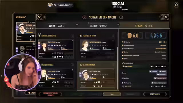 01:16:10Der Stream wechselt zum Spiel Hollywood Animal. Lory gründet ihr eigenes Filmstudio 'Lorrywood' und nimmt verschiedene Tiere wie Wombats als Maskottys in ihr Team auf. Mit Unterstützung der Community für die Rechtsabteilung, Kommunikation und Finanzen beginnt sie, ihre Filmfirma aufzubauen. Das erste Projekt ist die Fertigstellung eines unvollständigen Films über einen schüchternen Tänzer namens Johnny Redman.