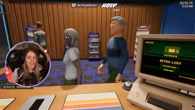 00:23:07Nach den einleitenden Gesprächen wechselt der Stream zum eigentlichen Gameplay. Das Spiel Retro Rewind wird gestartet, ein Spiel, das an alte Videotekzeiten erinnert. Der Spieler übernimmt die Rolle eines Ladenbesitzers, der eine Videothek führt. Die ersten Schritte werden unternommen, um das Geschäft zu eröffnen, wie das Einrichten von Regalen und das Auslegen von Filmen. Ziel ist es, Kunden zu bedienen und Umsatz zu generieren.
