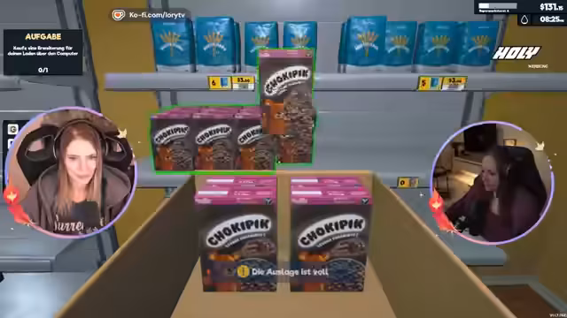 02:40:17Die Streamerin und ihr Mitspieler verwalten ihren virtuellen Supermarkt intensiv. Sie diskutieren die Reihenfolge bei der Einrichtung der Regale und die praktischen Vorteile eines neu freigeschalteten Scanners, der das Bestellwesen erheblich vereinfacht. Die Entscheidung über die Farbgebung der Regale wird getroffen, um ein ansprechendes Erscheinungsbild zu schaffen. Die streamerische Auseinandersetzung mit dem Spülmaschinen-Fehler aus einem Praktikum dient als humorvolle und peinliche Anekdote, die den Chat einbezieht.