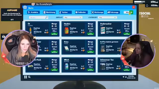 00:53:02Die Streamerin startet einen gemeinsamen Stream mit Yadi im Supermarkt-Simulator. Sie beginnen mit einem kleinen Budget von 50 Dollar und kaufen die ersten Produkte ein, um einen kleinen Laden zu betreiben. Die Anfangsphase ist noch entspannt, jedoch gibt es erste Herausforderungen bei der Preisgestaltung und der Bedienung des Kassensystems. Beide Streamer haben unterschiedliche Arbeitsstile, einer ist motivierter und rennt viel, während der andere ruhiger die Regale auffüllt.