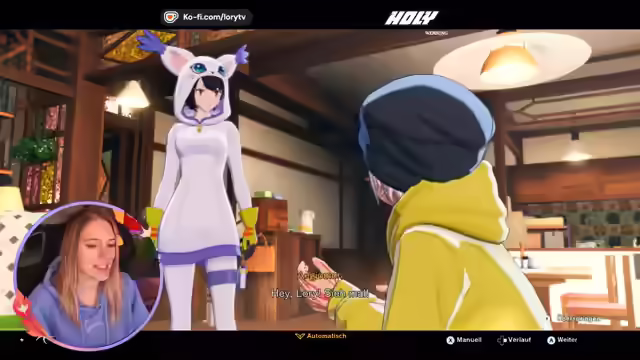 01:25:00Es wird der Plan für den heutigen Stream vorgestellt: Digimon weiterspielen, Little Nightmare 2 beenden und eventuell noch Digimon oder COD spielen. Baby Steps ist eher für Dienstag geplant. Es wird sich darüber gewundert, wie lange das Frühstück dauert, was auf das viele Reden im Stream zurückgeführt wird. Die Frage, ob man im Stream zu viel reden kann, wird diskutiert. Der Chat wird als "Troller" bezeichnet, was auf die eigene Art des Zurücktrollens zurückgeführt wird. Es wird festgestellt, dass der Chat an diesem Wochenende ungewöhnlich nett ist. Die Frage, ob man Kaffee holen oder direkt mit dem Spiel beginnen soll, wird in den Raum gestellt. Während des Spielstarts wird ein Kaffee geholt und die Mimik des Chats vorgestellt. Ein Pummelpick wird verschenkt und der Chat wird als Minions bezeichnet. Es wird kurz etwas im Hintergrund erledigt, bevor es mit Digimon weitergeht. Die Streamerin schlüpft in die Rolle einer Agentin und setzt das Digimon-Abenteuer fort, wobei sie die Zuschauer herzlich einlädt, dabei zu sein.