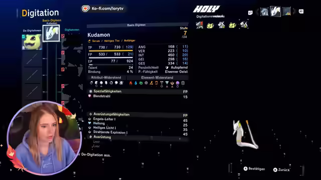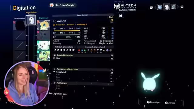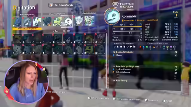 03:29:15Es wird überlegt, welche Digitationen durchgeführt werden sollen, wobei die Chat-Community um Rat gefragt wird. Es wird diskutiert, ob man Digimon so früh wie möglich wieder zurückverwandeln sollte, um sie stärker zu machen, oder ob es sinnvoller ist, sie zuerst hochzuleveln. Das System der Bindungen wird thematisiert, wobei erklärt wird, dass die Bindung angibt, wie oft man ein Digimon digitieren kann und dass man durch aktives Kämpfen mit dem Digimon die Bindung erhöht. Es wird festgestellt, dass die blauen Stats durch das Leveln über den Ausgangswert erhöht werden. Matrix, ein Zuschauer, der sich gut mit Digimon auskennt, erklärt sich bereit, bei Fragen zu helfen und wird scherzhaft als Experte engagiert. Es wird beschlossen, am Dienstag mit dem Spiel fortzufahren.